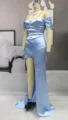 Costomer Scores and Reviews for Sky Blue Sweep Train Bridesmaid Dresses Satin Asymmetrical Design Birthday party evening Gowns Vestido De Dama De Honra 2021 New